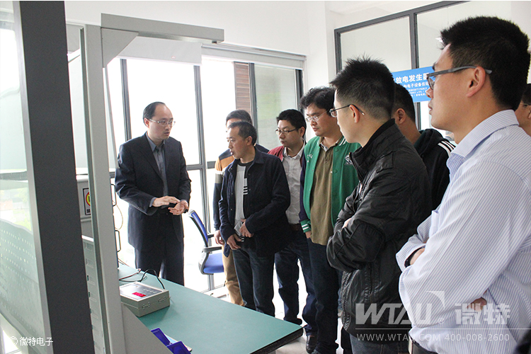 在實驗室微特電子高總向來訪貴賓介紹雷擊浪涌實驗設(shè)備