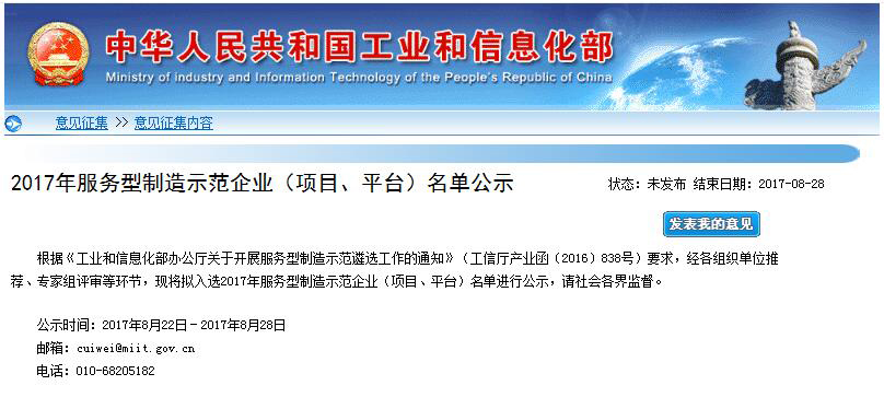 服務型制造示范平臺是工信部為貫徹落實《中國制造2025》關于發(fā)展服務型制造的戰(zhàn)略部署,按照《發(fā)展服務型制造專項行動指南》的目標要求,遴選面向社會提供公共服務或面向市場提供專業(yè)服務的生產性服務機構為示范平臺。