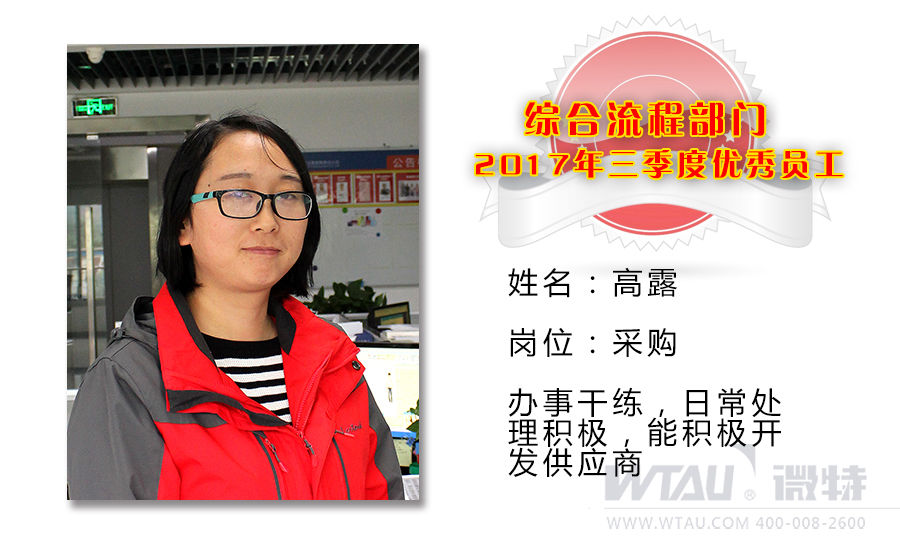 三季度先進(jìn)提名:生產(chǎn)部:楊開翔;儀表設(shè)計(jì)部:蔡小雨;聲波&市場營銷:倪秀;綜合流程部:劉滿君、陳曉燕 ;微特智慧谷:萬澤容