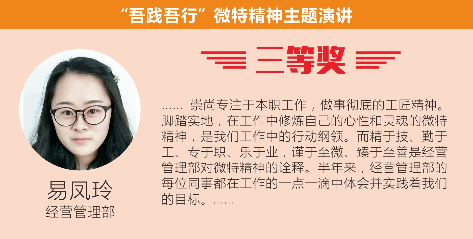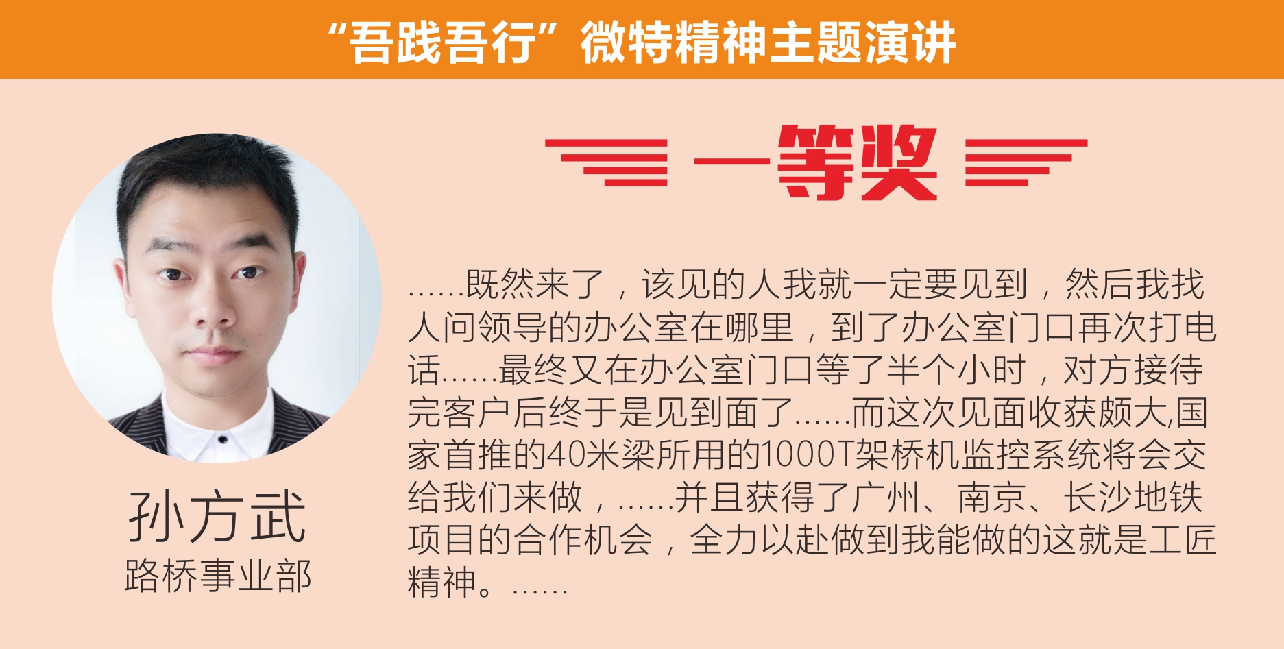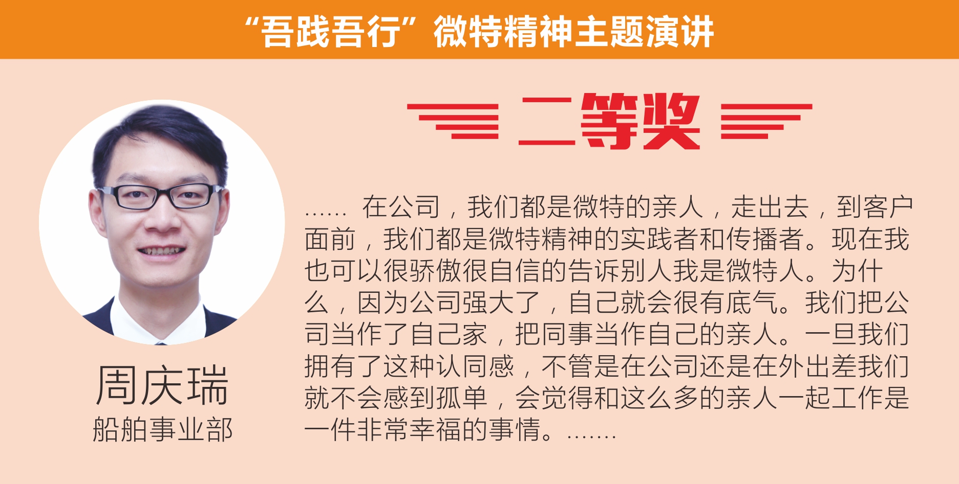 最后,聶總做了總結(jié)性發(fā)言。他對選手們精彩演講表示祝賀,對于公司員工在工作中能對微特精神有如此深的感悟甚是欣慰,對此次活動(dòng)表示了充分肯定。他希望公司員工能積極參加類似活動(dòng),鍛煉自我、增強(qiáng)自信,在工作中繼續(xù)發(fā)揚(yáng)微特精神。