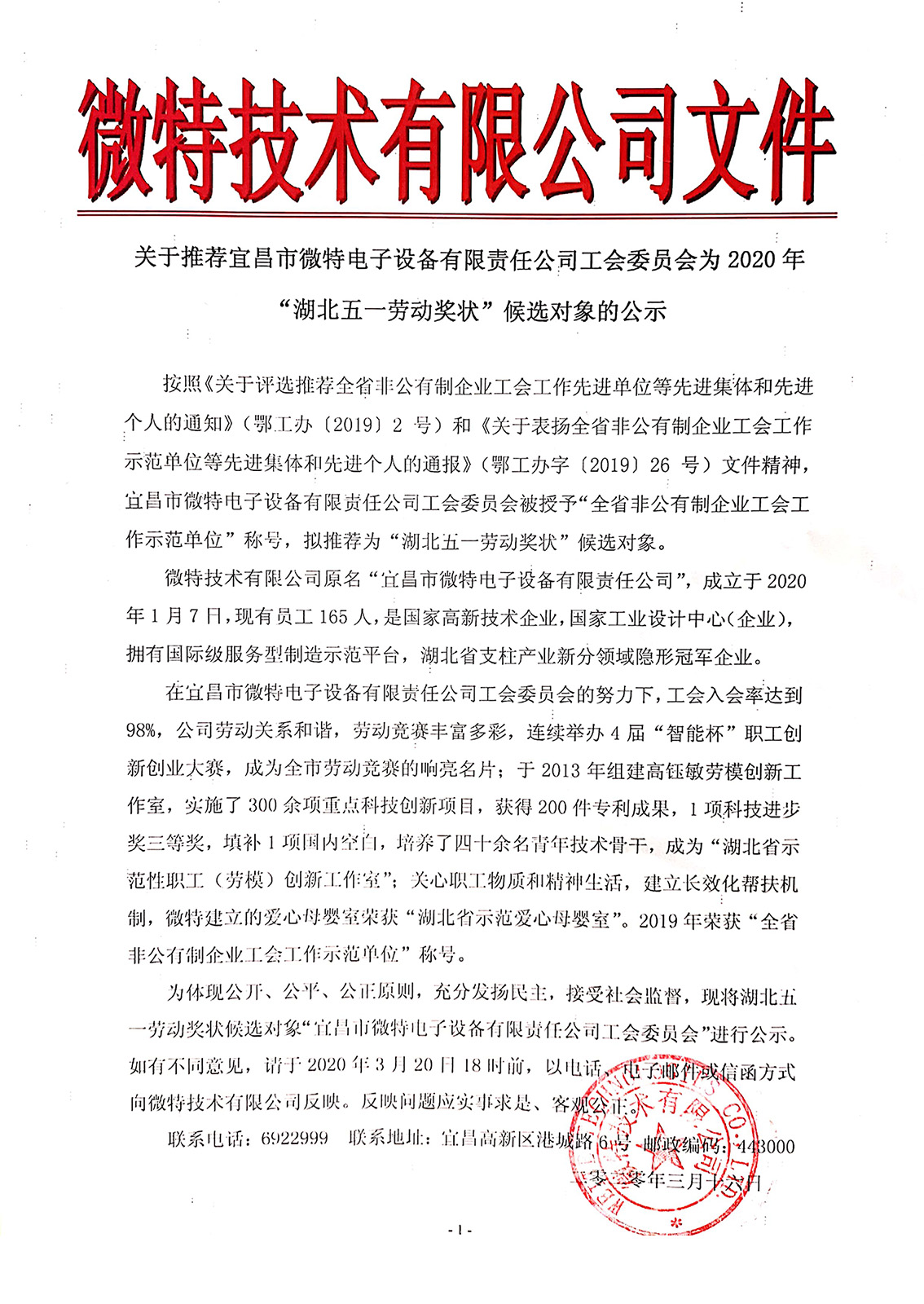 2020年“湖北五一勞動(dòng)獎(jiǎng)狀”候選對(duì)象的公示