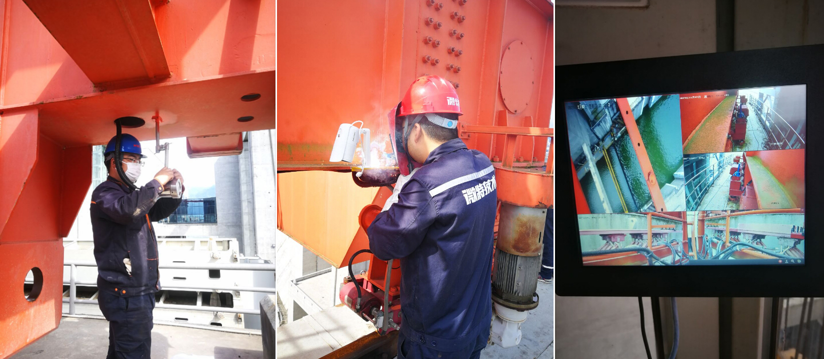 ▲微特技術人員配合三峽通航管局領導檢查現(xiàn)場施工情況
